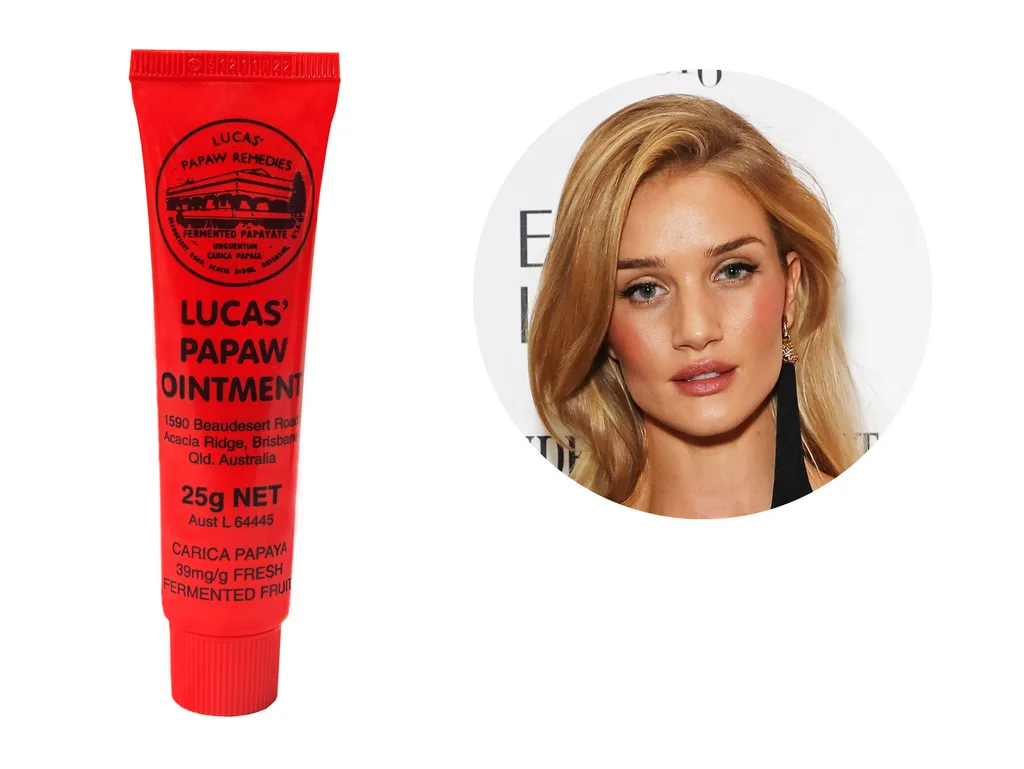 Rosie Huntington-Whiteley relies on Lucas Papaw Ointment to keep her lips soft and supple.