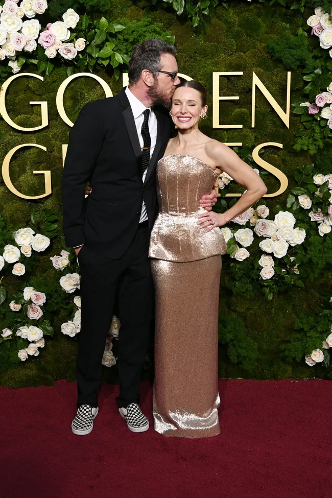 Kristen Bell – nominated for Nobody Wants This and who walked the red carpet with husband Dax Shephard – looked very sophisticated in this gold gown.
