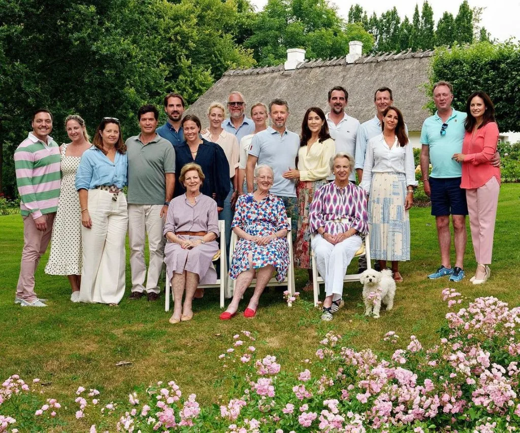 It was a picturesque sight to behold as Queen Margrethe, her sisters Queen Anne-Marie of Greece and Princess Benedikte, along with their grandchildren and spouses all gathered at the southern Jutland castle.