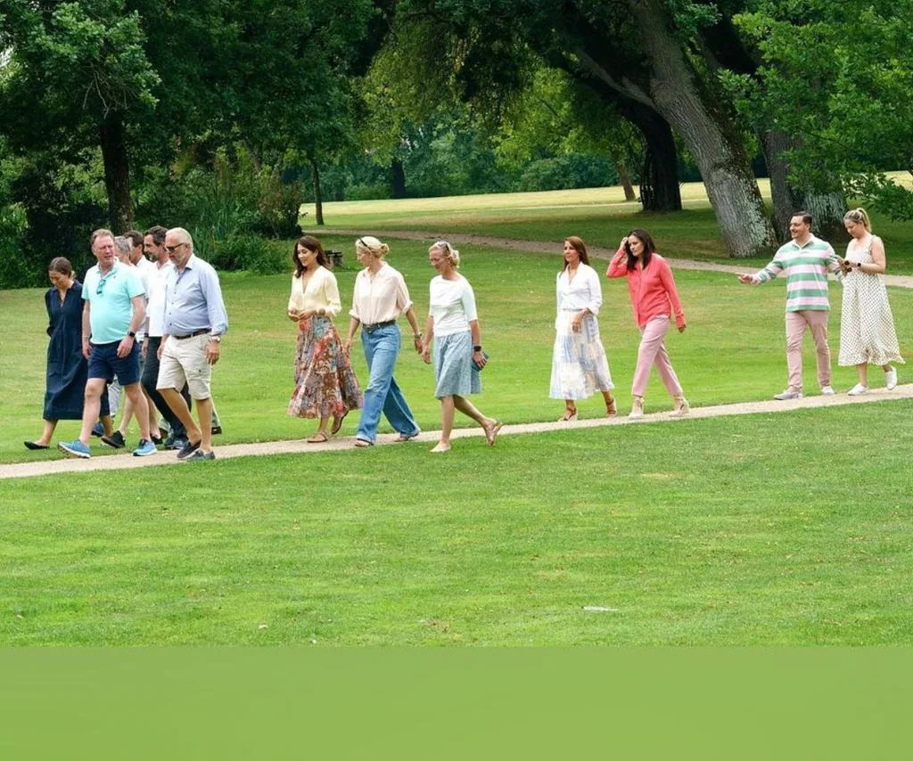 The family reunion was marked via the official Danish royal family Instagram account which shared a slew of photos from the blooming gardens as the family stood atop a bridge, drove golf carts, and strolled the grounds.