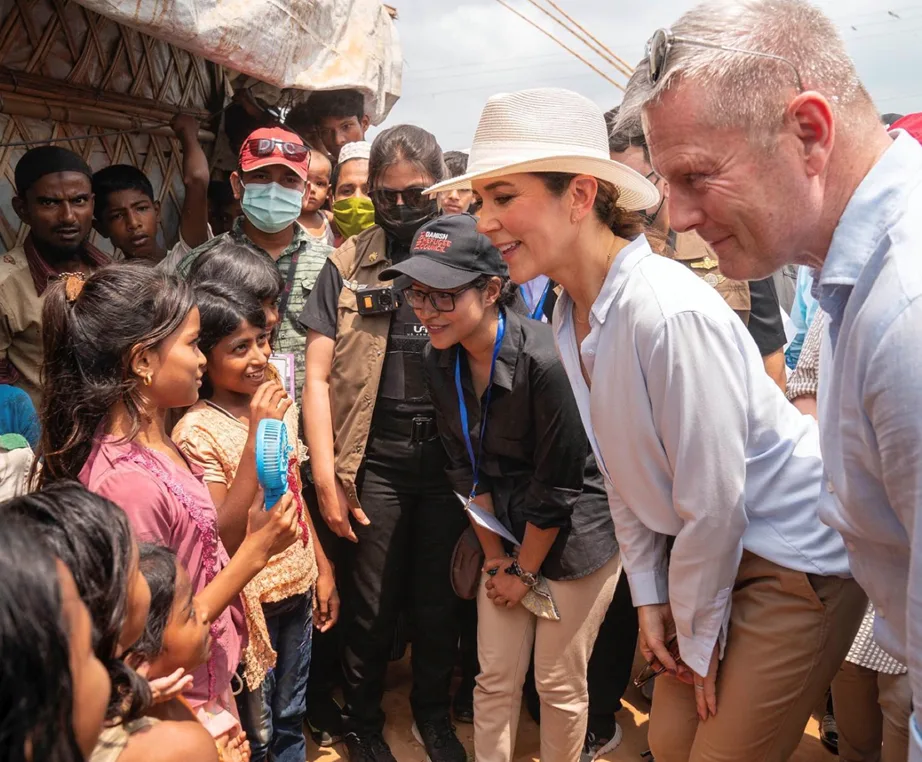 During her royal tour of Bangladesh in April this year, Mary donned a wide-brimmed white hat from Deborah Hutton’s sun-safe hat company, Canopy Bay Hats.