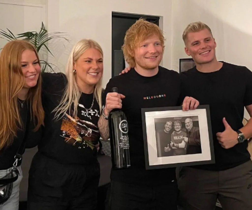 All three of the cricket legends children took to Instagram to share snaps from the catch up they had with the British musician, with son Jackson posting a photo of himself, his siblings, and Ed with the caption “Ed ❤️ @teddysphotos Hope you like the gifts and Thankyou for the @tinglyteds 🥫🍷 And guess what the date is 2.3.23 ❤️.”