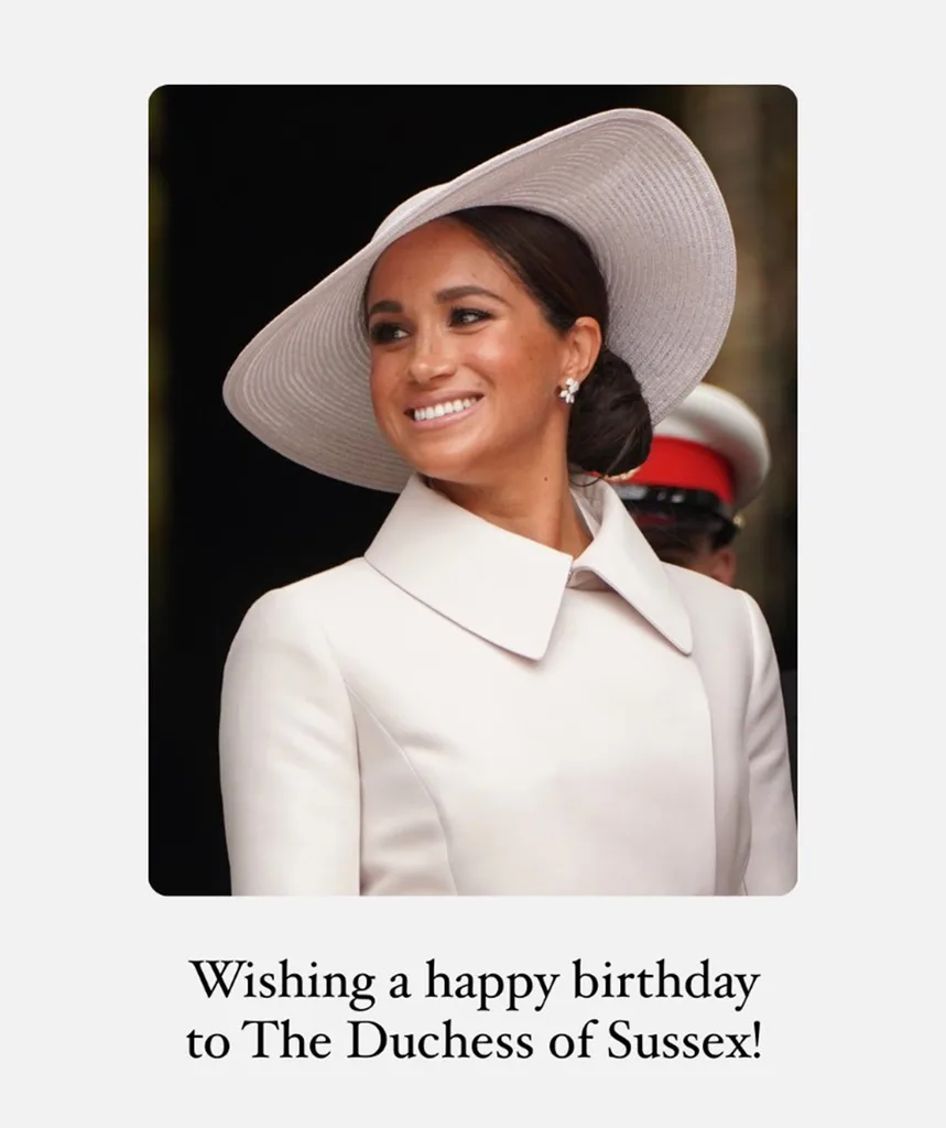 (Credit: (Image: Instagram))“Wishing a happy birthday to The Duchess of Sussex!” they penned alongside a photo of the duchess during the June celebrations for the Queen’s Platinum Jubilee.
