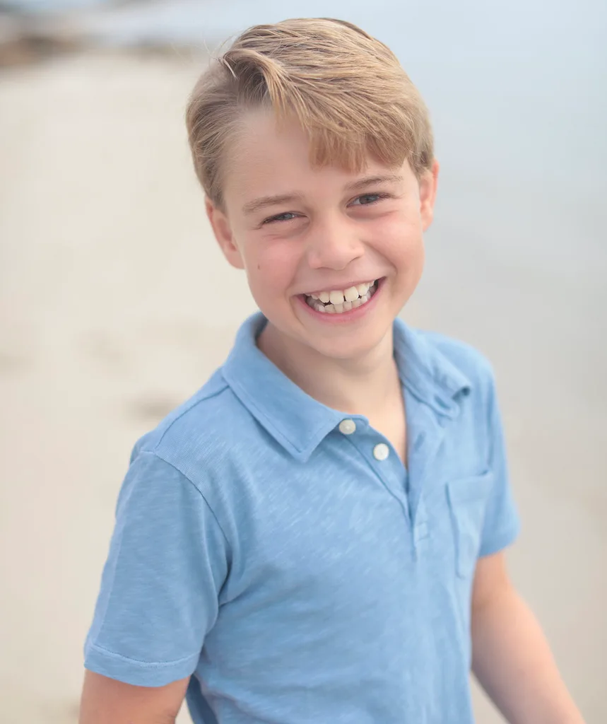 With several adult teeth grown in and his sandy blonde hair parted down the side, George looks more like his father than ever in the new portrait.